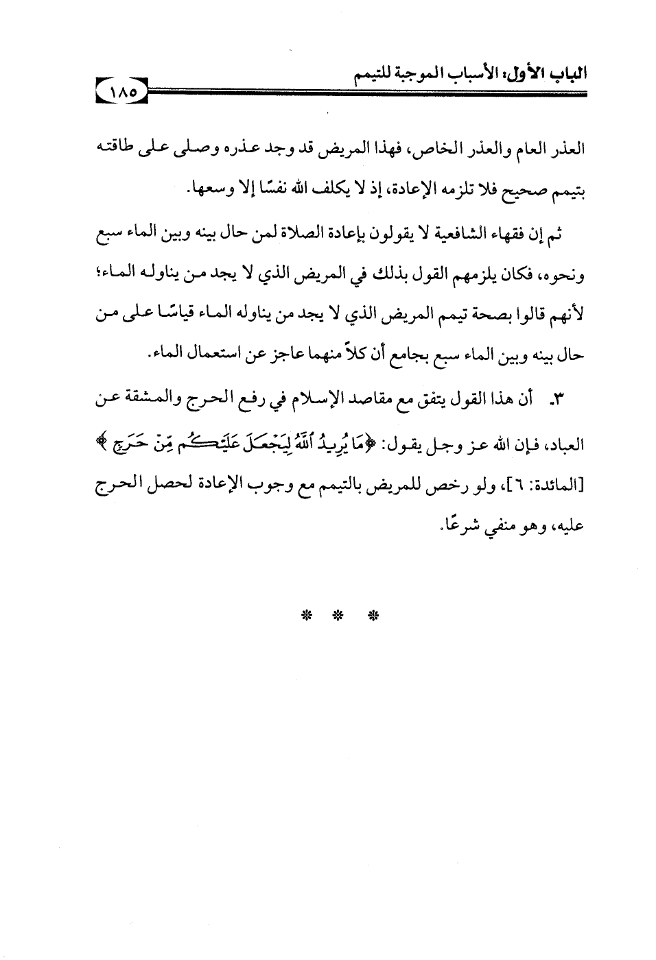 3ـ أن هذا القول يتفق مع مقاصد الإسلام في رفع الحرج والمشقة عن العباد، فإن الله عز وجل يقول: {مَا يُرِيدُ اللَّهُ لِيَجْعَلَ عَلَيْكُمْ مِنْ حَرَجٍ} [المائدة: 6]، ولو رخص للمريض بالتيمم مع وجوب الإعادة لحصل الحرج عليه وهو منفي شرعًا.