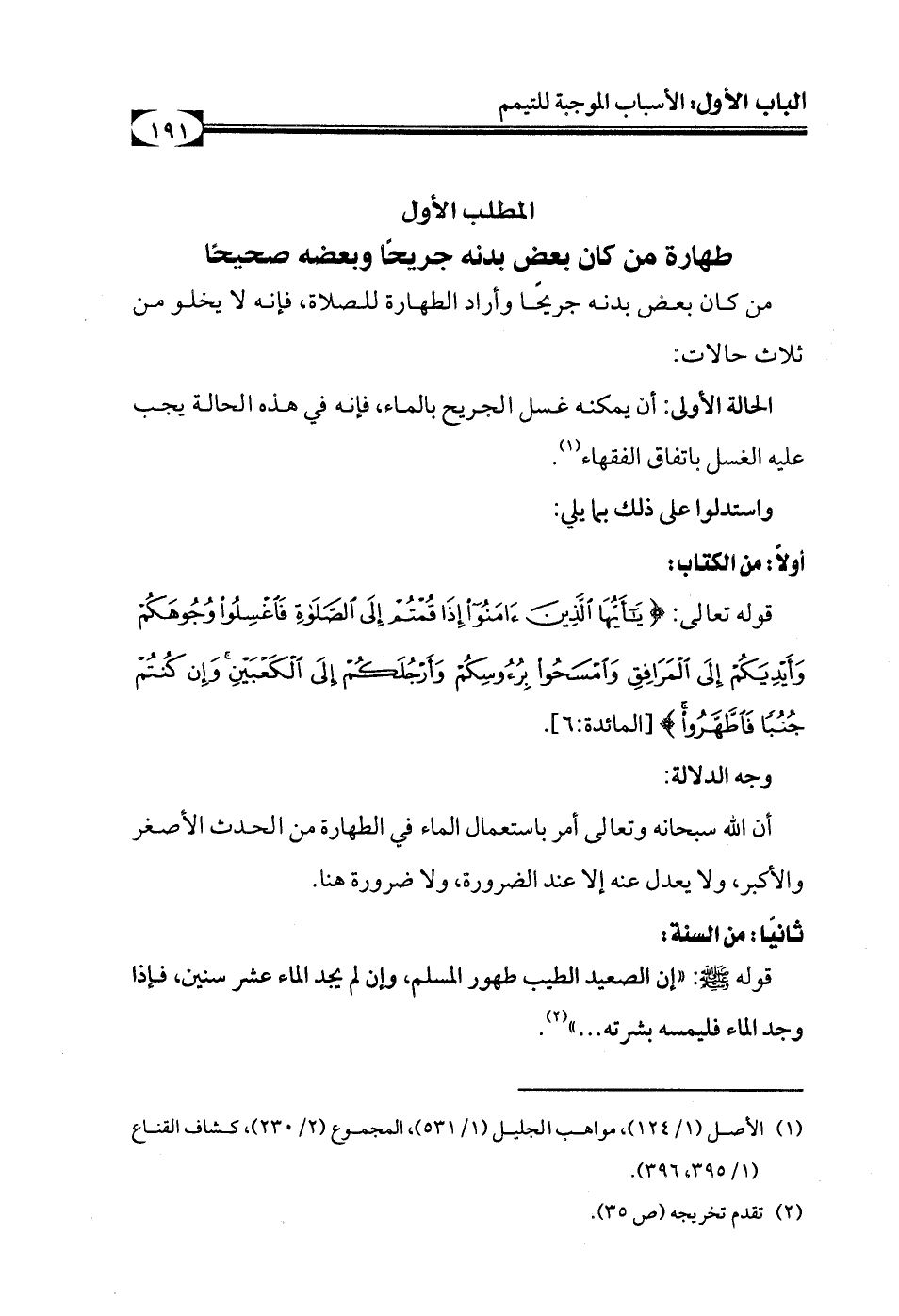 من كان بعض بدنه جريحًا وأراد الطهارة للصلاة، فإنه لا يخلو من ثلاث حالات: