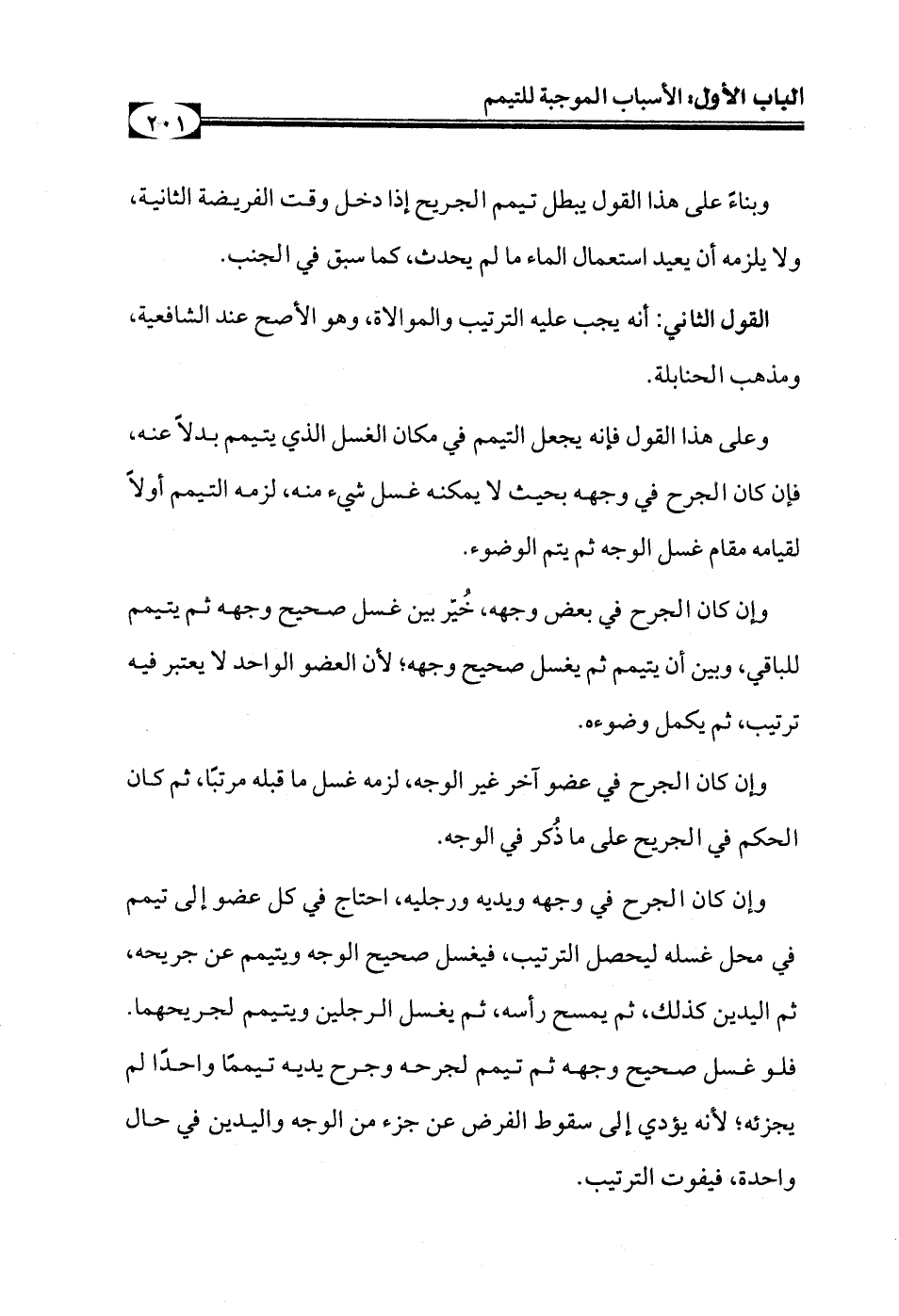 وبناءً على هذا القول يبطل تيمم الجريح إذا دخل وقت الفريضة الثانية، ولا يلزمه أن يعيد استعمال الماء ما لم يحدث، كما سبق في الجنب.