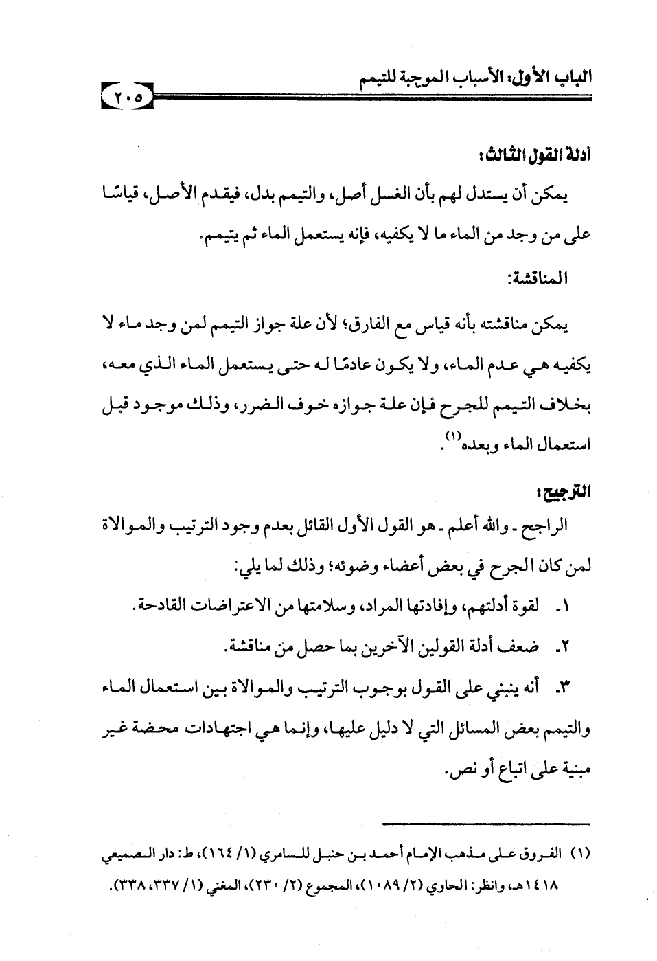(¬1) الفروق على مذهب الإمام أحمد بن حنبل للسامري (1/ 164)، ط: دار الصميعي 1418هـ، وانظر: الحاوي (2/ 1089)، المجموع (2/ 230)، المغني (1/ 337، 338).