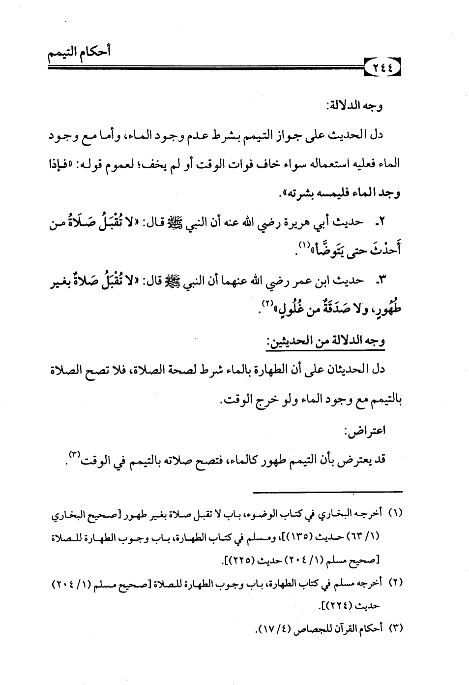 (¬2) أخرجه مسلم في كتاب الطهارة، باب وجوب الطهارة للصلاة [صحيح مسلم (1/ 204) حديث (224)].