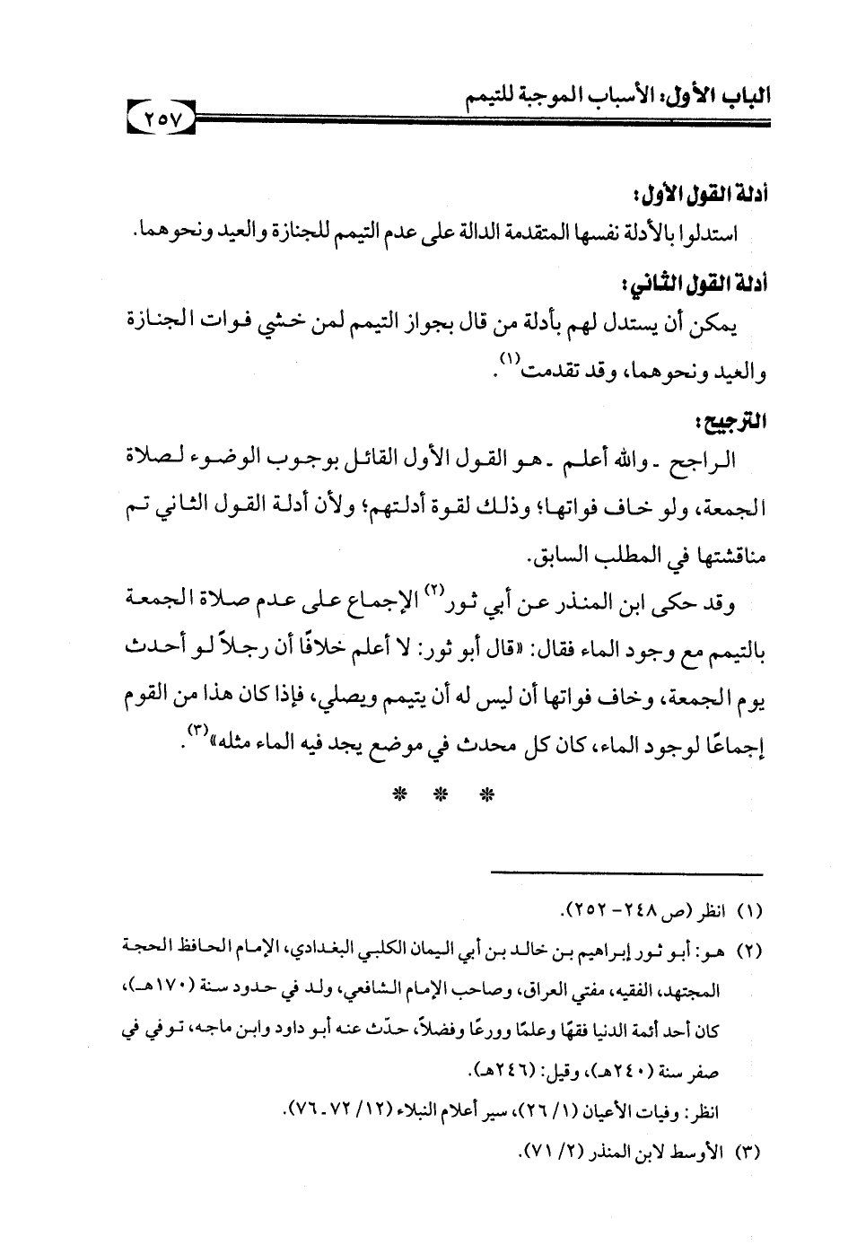 (¬2) هو: أبو ثور إبراهيم بن خالد بن أبي اليمان الكلبي البغدادي، الإمام الحافظ الحجة المجتهد، الفقيه، مفتي العراق، وصاحب الإمام الشافعي، ولد في حدود سنة (170هـ)، كان أحد أئمة الدنيا فقهًا وعلمًا وورعًا وفضلاً، حدّث عنه أبو داود وابن ماجه، توفي في صفر سنة (240هـ)، وقيل: (246هـ).