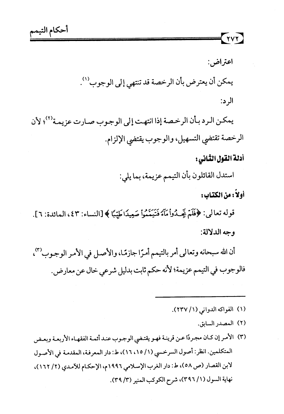 أن الله سبحانه وتعالى أمر بالتيمم أمرًا جازمًا، والأصل في الأمر الوجوب (¬3)، فالوجوب في التيمم عزيمة؛ لأنه حكم ثابت بدليل شرعي خال عن معارض.
