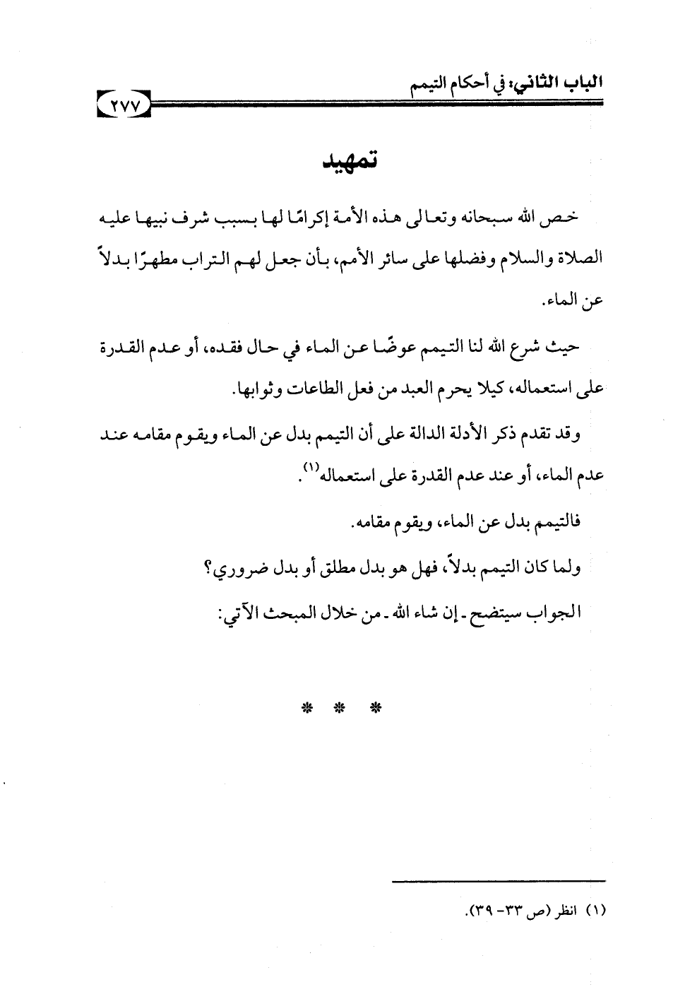 وقد تقدم ذكر الأدلة الدالة على أن التيمم بدل عن الماء ويقوم مقامه عند عدم الماء، أو عند عدم القدرة على استعماله (¬1).