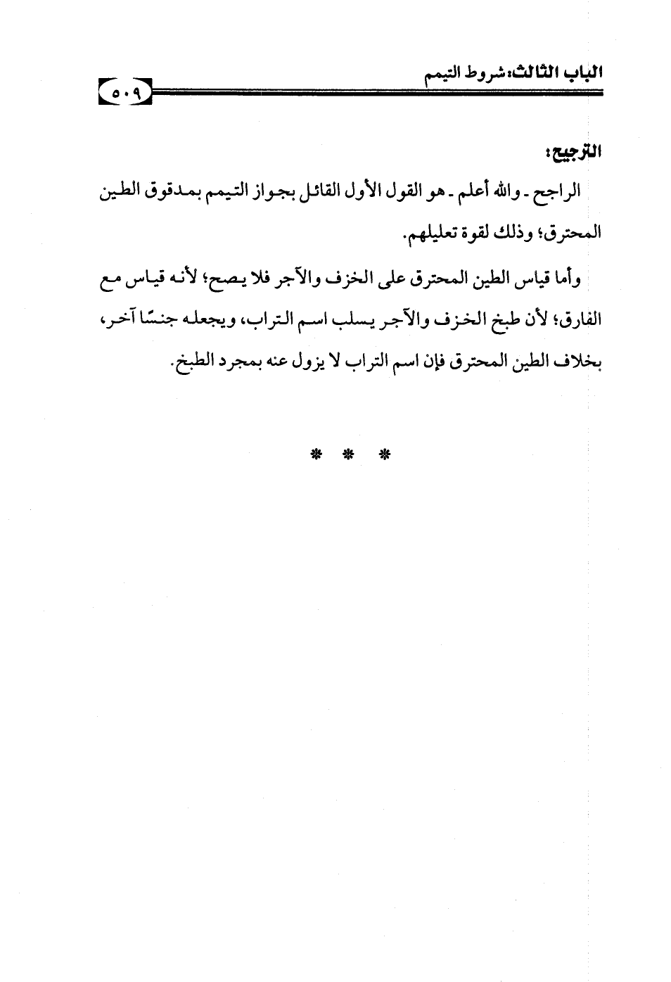 وأما قياس الطين المحترق على الخزف والآجر فلا يصح؛ لأنه قياس مع الفارق؛ لأن طبخ الخزف والآجر يسلب اسم التراب، ويجعله جنسًا آخر، بخلاف الطين المحترق فإن اسم التراب لا يزول عنه بمجرد الطبخ.