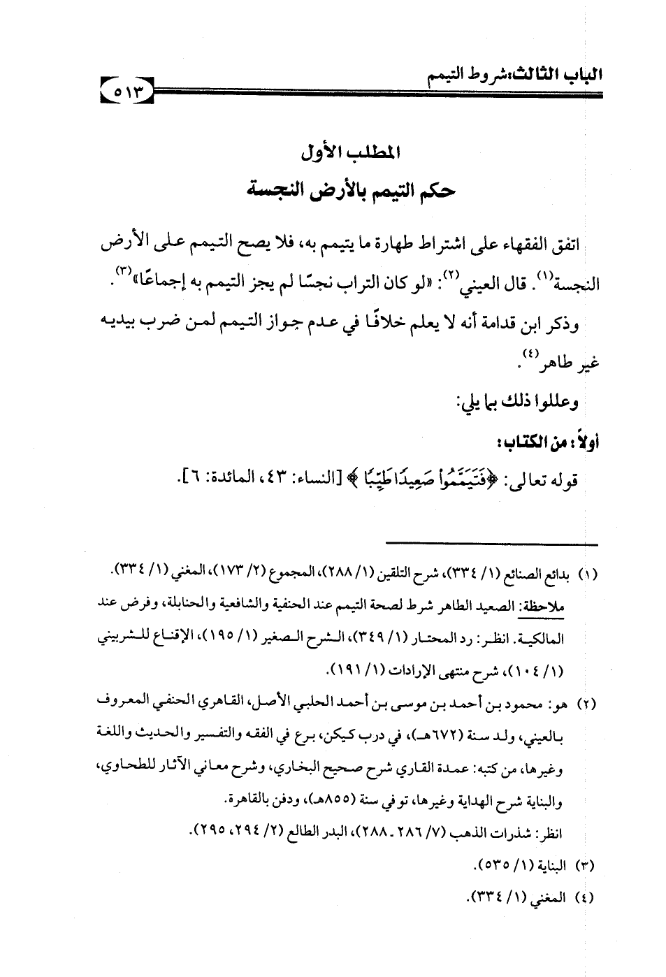 (¬1) بدائع الصنائع (1/ 334)، شرح التلقين (1/ 288)، المجموع (2/ 173)، المغني (1/ 334).