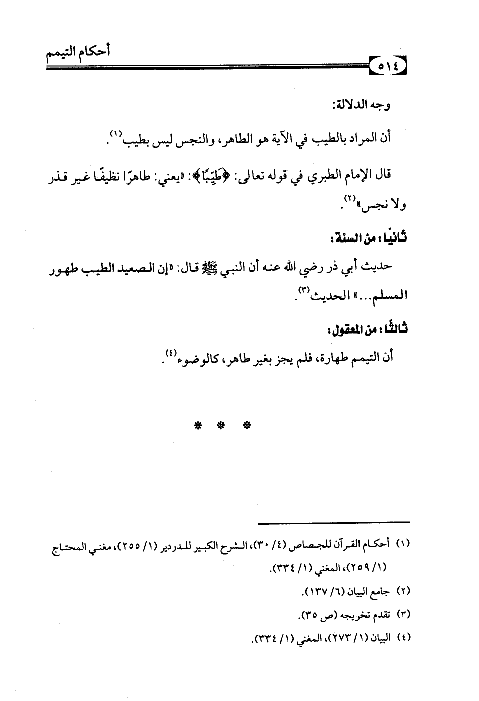(¬1) أحكام القرآن للجصاص (4/ 30)، الشرح الكبير للدردير (1/ 255)، مغني المحتاج (1/ 259)، المغني (1/ 334).