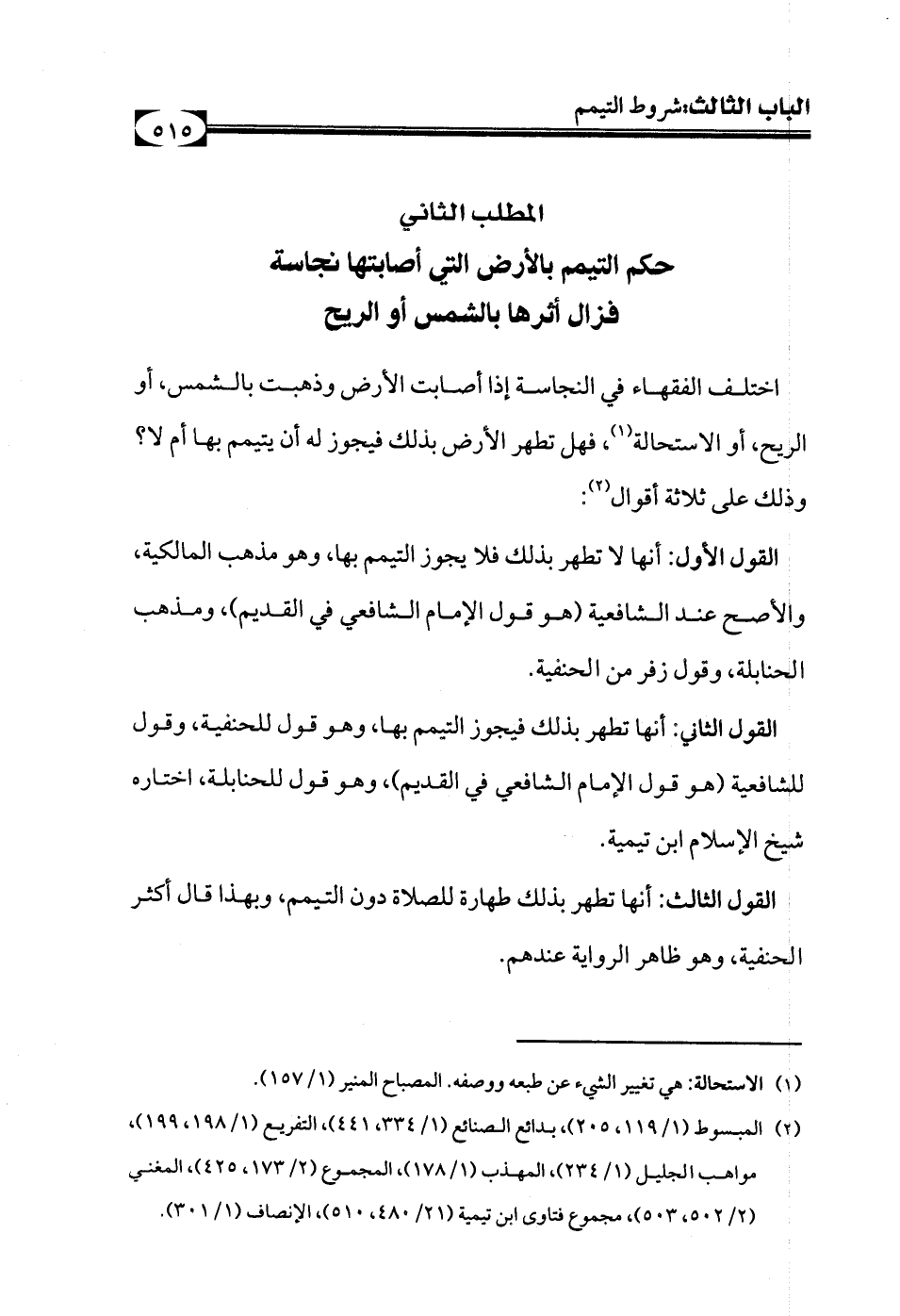 (¬2) المبسوط (1/ 119، 205)، بدائع الصنائع (1/ 334، 441)، التفريع (1/ 198، 199)، مواهب الجليل (1/ 234)، المهذب (1/ 178)، المجموع (2/ 173، 425)، المغني (2/ 502، 503)، مجموع فتاوى ابن تيمية (21/ 480، 510)، الإنصاف (1/ 301).