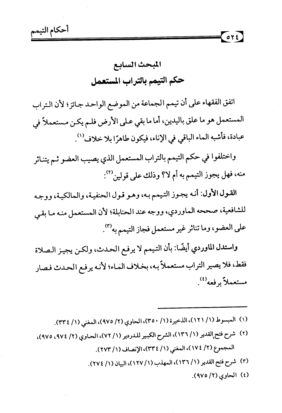 (¬1) المبسوط (1/ 121)، الذخيرة (1/ 350)، الحاوي (2/ 975)، المغني (1/ 334).