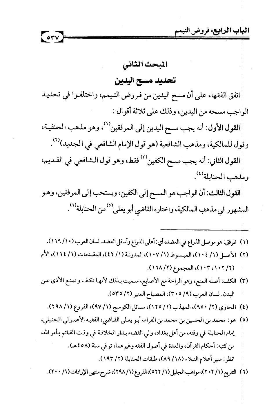 القول الثالث: أن الواجب هو المسح إلى الكفين، ويستحب إلى المرفقين، وهو المشهور في مذهب المالكية، واختاره القاضي أبو يعلى (¬5) من الحنابلة (¬6).