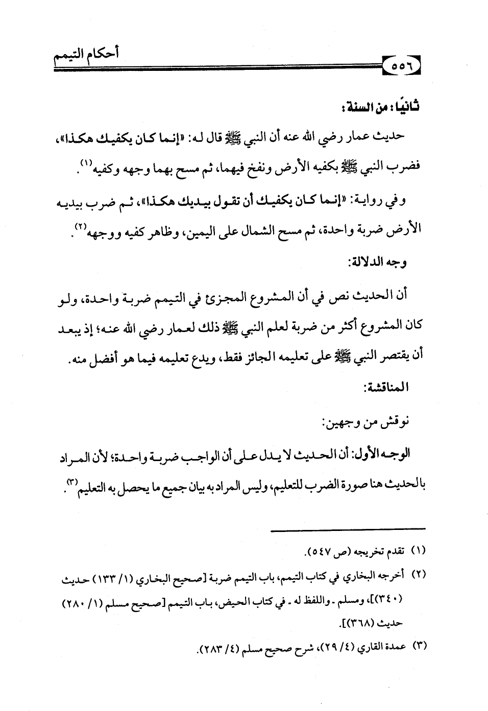 (¬2) أخرجه البخاري في كتاب التيمم، باب التيمم ضربة [صحيح البخاري (1/ 133) حديث (340)]، ومسلم ـ واللفظ له ـ في كتاب الحيض، باب التيمم [صحيح مسلم (1/ 280) حديث (368)].