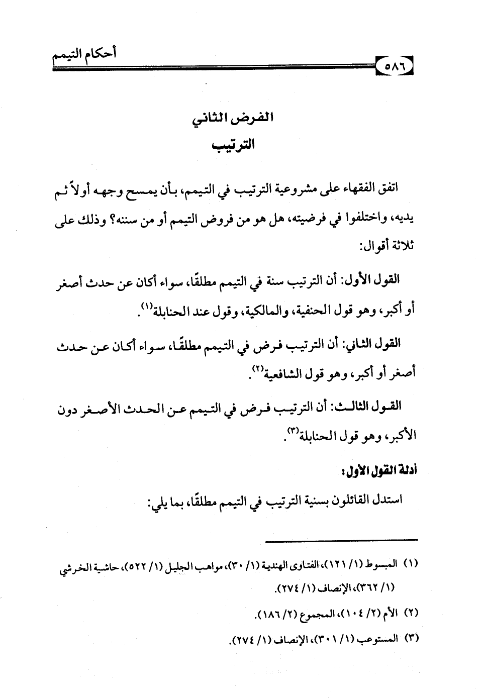 القول الثالث: أن الترتيب فرض في التيمم عن الحدث الأصغر دون الأكبر، وهو قول الحنابلة (¬3).