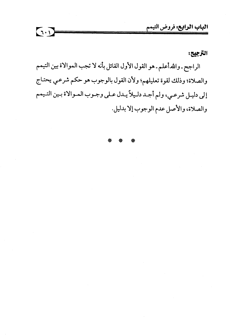 الراجح ـ والله أعلم ـ هو القول الأول القائل بأنه لا تجب الموالاة بين التيمم والصلاة، وذلك لقوة تعليلهم، ولأن القول بالوجوب هو حكم شرعي يحتاج إلى دليل شرعي، ولم أجد دليلاً يدل على وجوب الموالاة بين التيمم والصلاة، والأصل عدم الوجوب إلا بدليل.