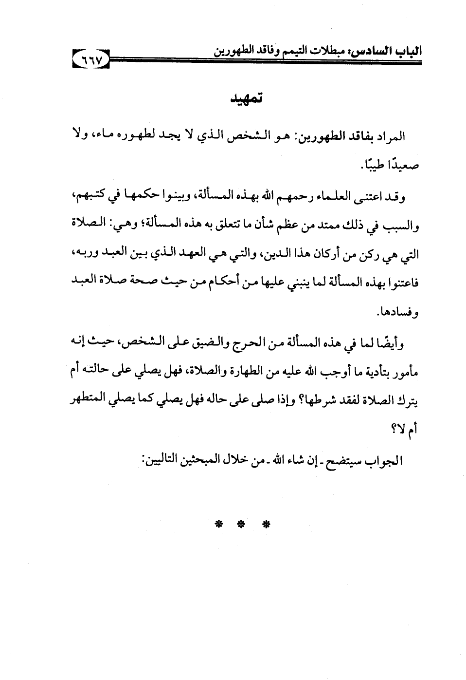 وأيضًا لما في هذه المسألة من الحرج والضيق على الشخص، حيث إنه مأمور بتأدية ما أوجب الله عليه من الطهارة والصلاة، فهل يصلي على حالته أم يترك الصلاة لفقد شرطها؟ وإذا صلى على حاله فهل يصلي كما يصلي المتطهر أم لا؟