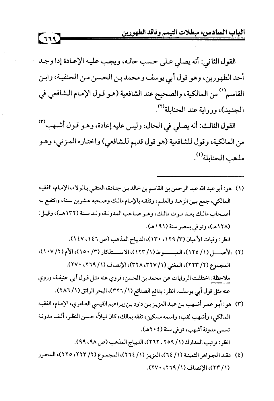 (¬4) عقد الجواهر الثمينة (1/ 64)، العزيز (1/ 264)، المجموع (2/ 223، 225)، المحرر (1/ 23)، الإنصاف (1/ 269، 270).