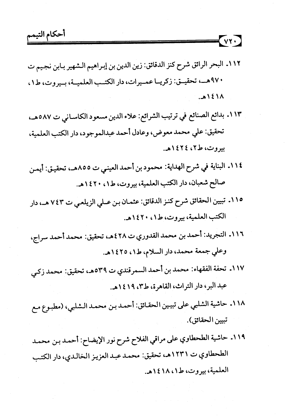 112 - البحر الرائق شرح كنز الدقائق: زين الدين بن إبراهيم الشهير بابن نجيم ت 970هـ، تحقيق: زكريا عميرات، دار الكتب العلمية، بيروت، ط1، 1418هـ.