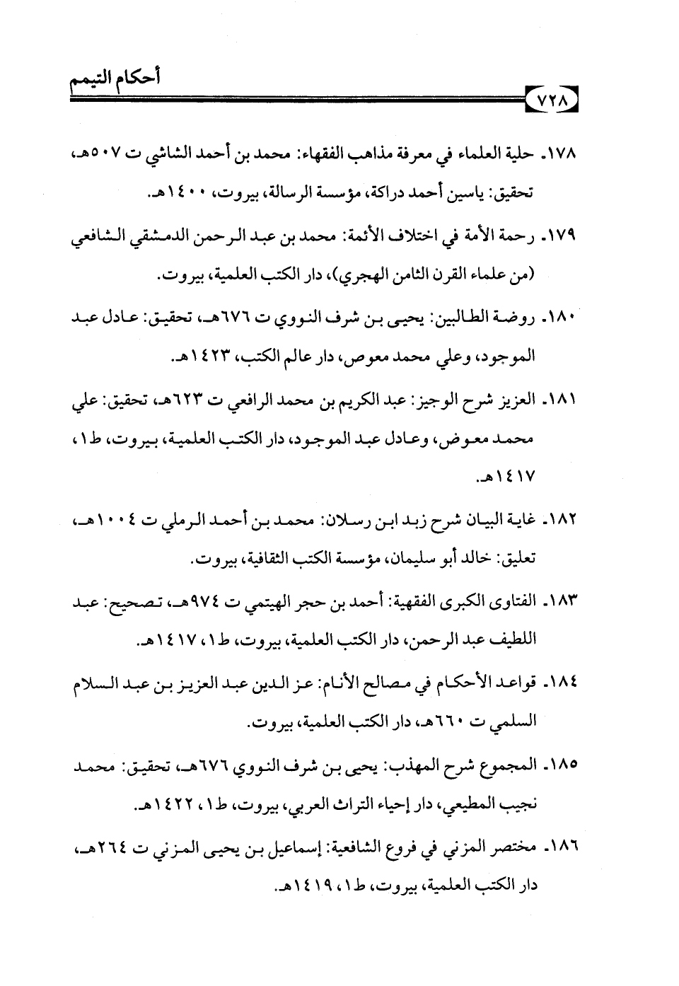 178 - حلية العلماء في معرفة مذاهب الفقهاء: محمد بن أحمد الشاشي ت 507هـ، تحقيق: ياسين أحمد دراكة، مؤسسة الرسالة، بيروت، 1400هـ.