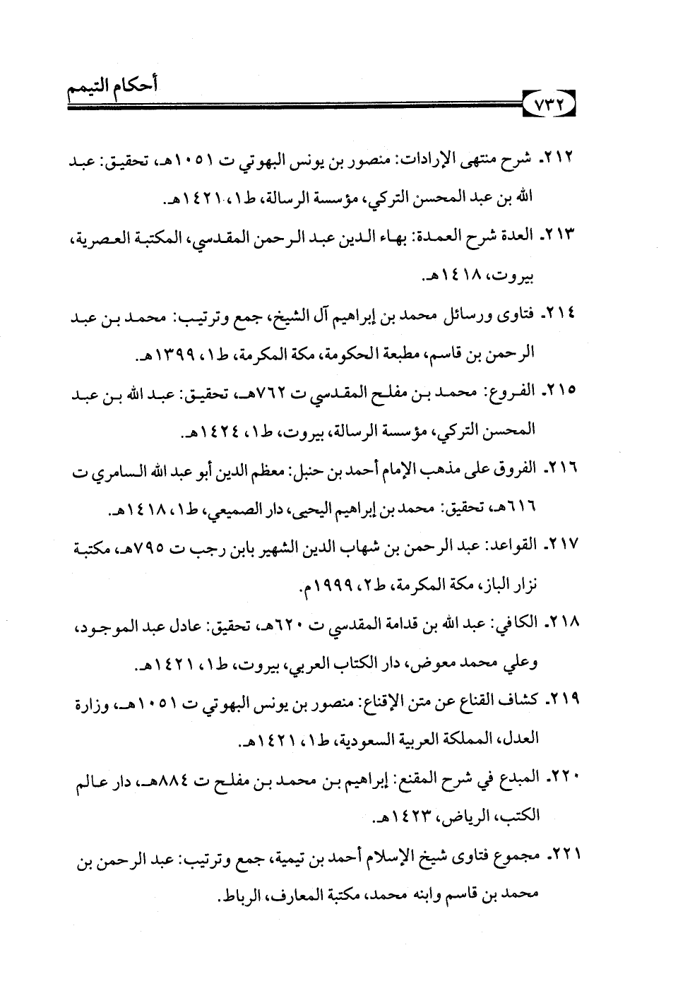 215 - الفروع: محمد بن مفلح المقدسي ت 762هـ، تحقيق: عبد الله بن عبد المحسن التركي، مؤسسة الرسالة، بيروت، ط1، 1424هـ.