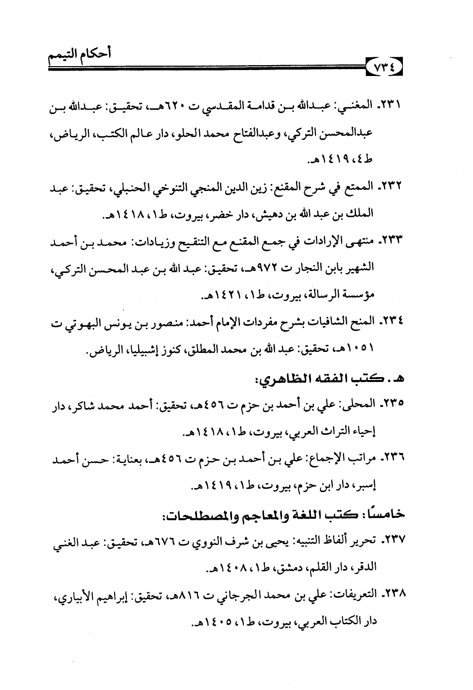 237 - تحرير ألفاظ التنبيه: يحيى بن شرف النووي ت 676هـ، تحقيق: عبد الغني الدقر، دار القلم، دمشق، ط1، 1408هـ.