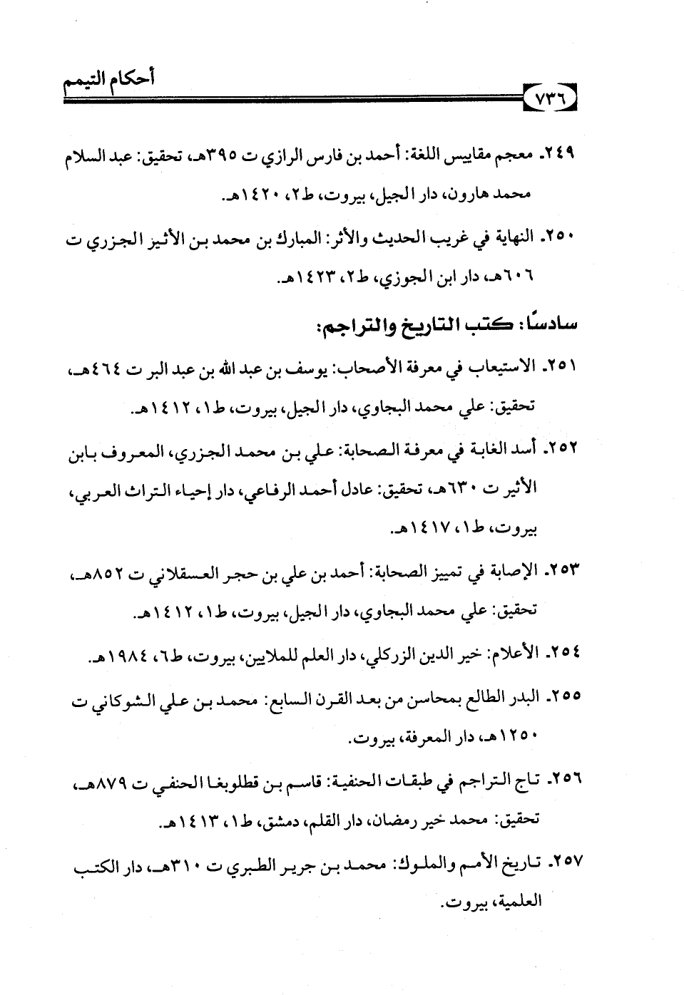252 - أسد الغابة في معرفة الصحابة: علي بن محمد الجزري، المعروف بابن الأثير ت 630هـ، تحقيق: عادل أحمد الرفاعي، دار إحياء التراث العربي، بيروت، ط1، 1417هـ.