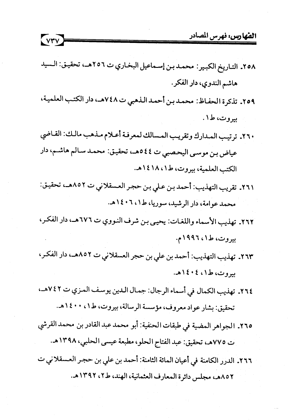263 - تهذيب التهذيب: أحمد بن علي بن حجر العسقلاني ت 852هـ، دار الفكر، بيروت، ط1، 1404هـ.