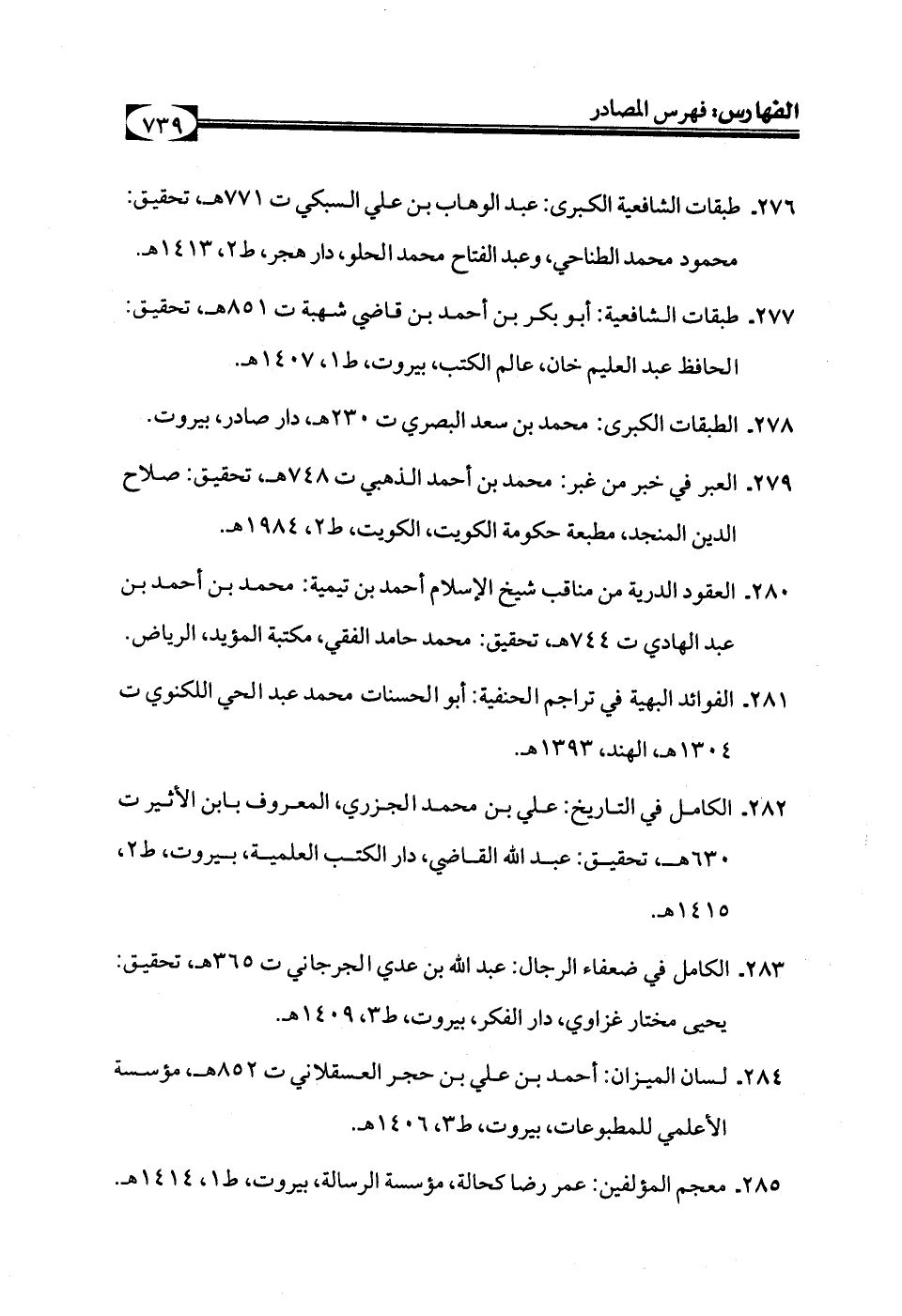 276 - طبقات الشافعية الكبرى: عبد الوهاب بن علي السبكي ت 771هـ، تحقيق: محمود محمد الطناحي، وعبد الفتاح محمد الحلو، دار هجر، ط2، 1413هـ.