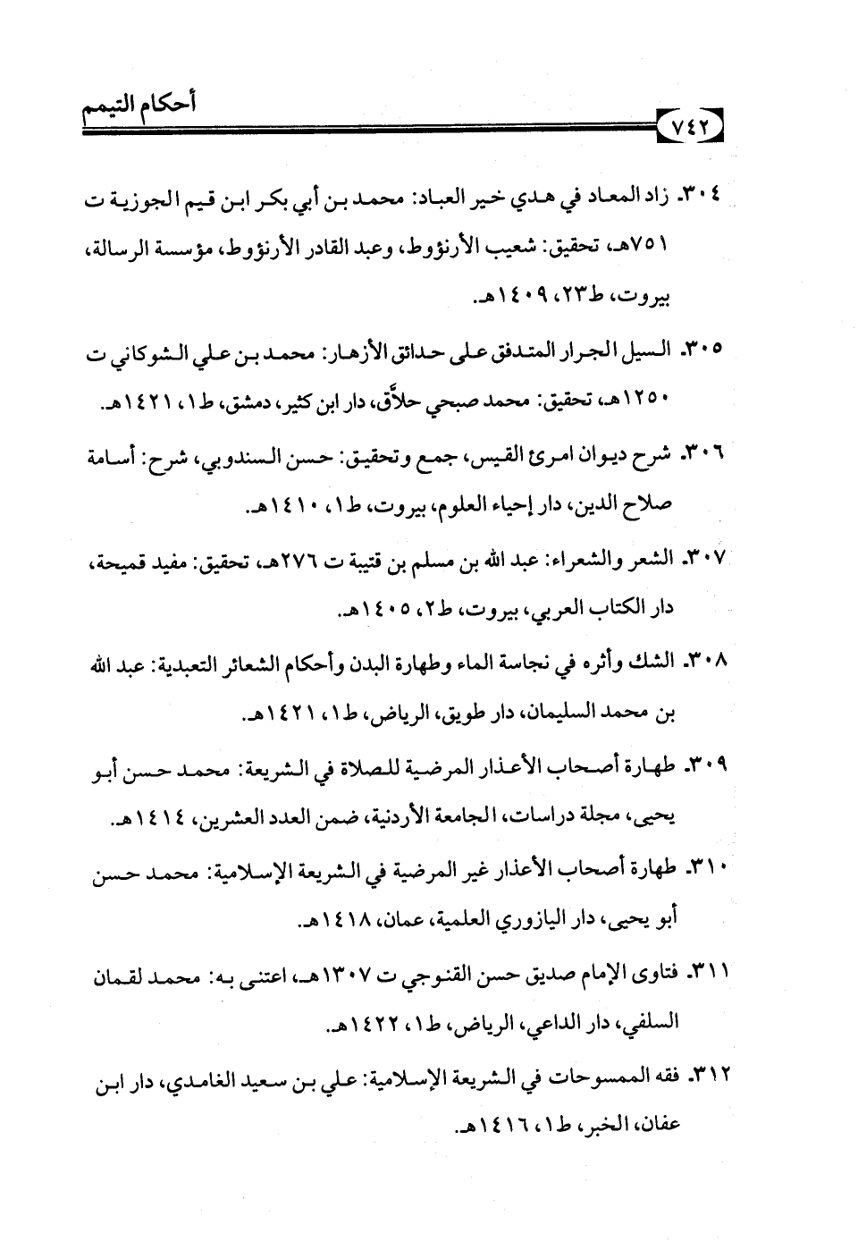 304 - زاد المعاد في هدي خير العباد: محمد بن أبي بكر ابن قيم الجوزية ت 751هـ، تحقيق: شعيب الأرنؤوط، وعبد القادر الأرنؤوط، مؤسسة الرسالة، بيروت، ط23، 1409هـ.
