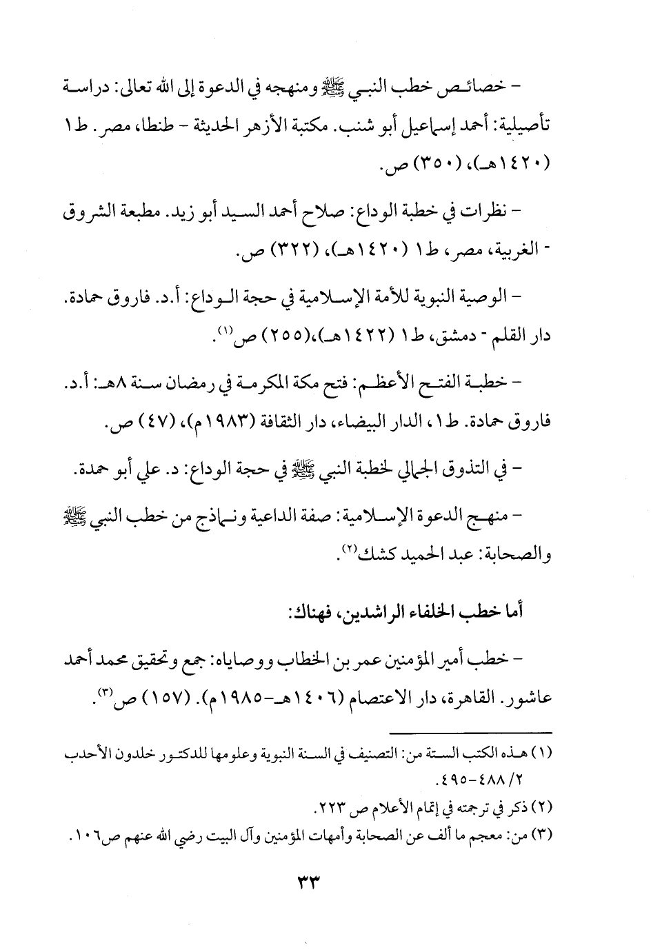 - الوصية النبوية للأمة الإسلامية في حجة الوداع: أ. د. فاروق حمادة. دار القلم - دمشق، ط 1 (1422 هـ)، (255) ص (¬1).