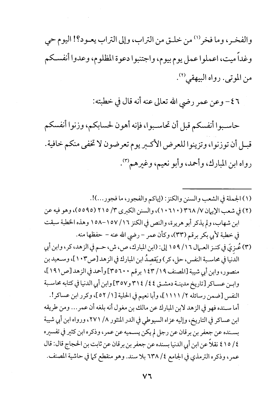 46 - وعن عمر رضي الله تعالى عنه أنه قال في خطبته: