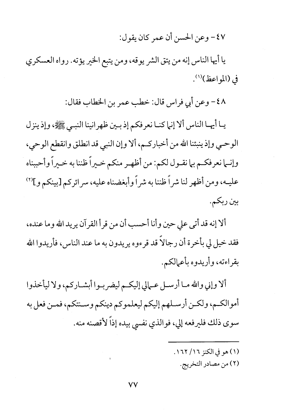 48 - وعن أبي فراس قال: خطب عمر بن الخطاب فقال: