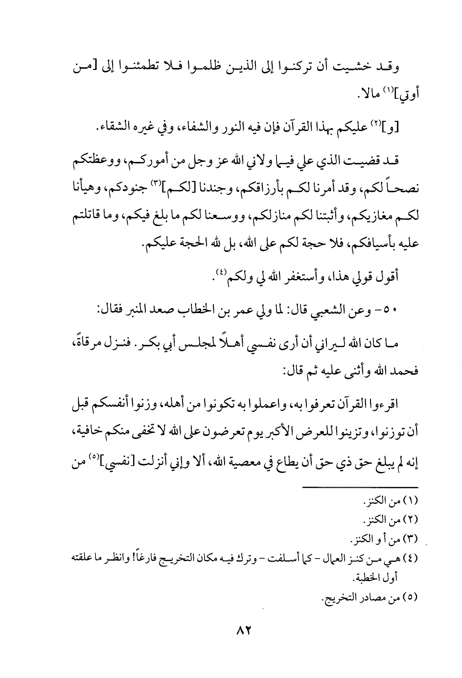 (¬4) هي من كنز العمال -كما أسلفت- وترك فيه مكان التخريج فارغًا! وانظر ما علقته أول الخطبة.