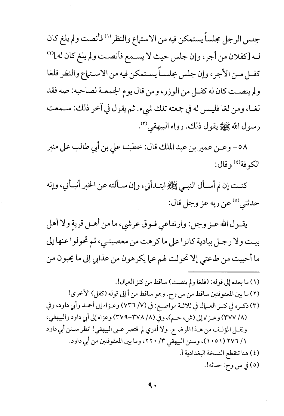 58 - وعن عمير بن عبد الملك قال: خطبنا علي بن أبي طالب على منبر الكوفة (¬4) وقال: