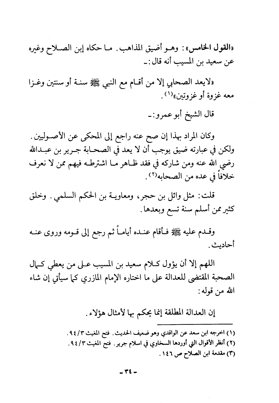 اللهم إلا أن يؤول كلام سعيد بن المسيب على من يعطي كمال الصحبة المقتضى للعدالة، على ما اختاره الإمام المازري كما سيأتي إن شاء الله من قوله: