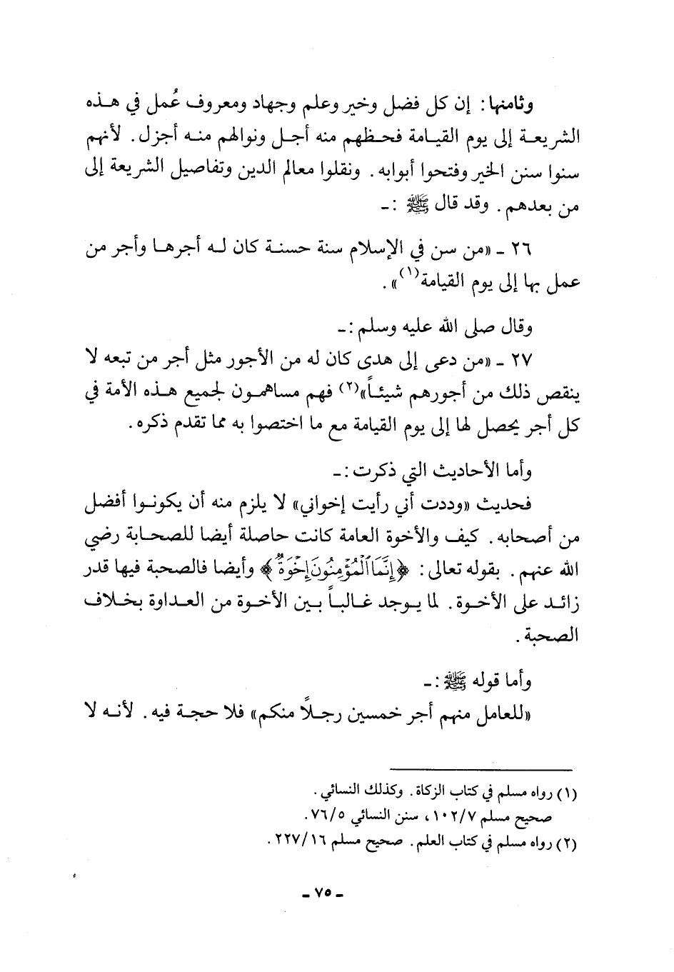 27- "من دعى إلى هدى كان له من الأجور مثل أجر من تبعه لا ينقص ذلك من أجورهم شيئاً "2.