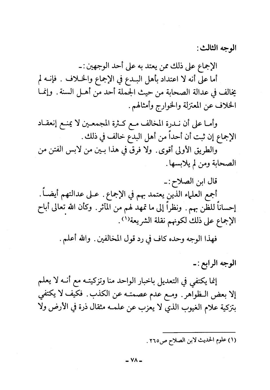 أجمع العلماء الذين يعتمد بهم في الإجماع على عدالتهم أيضاً إحساناً للظن بهم، ونظراً إلى ما تمهد لهم من المآثر، وكأن الله تعالى أباح الإجماع على ذلك لكونهم نقلة الشريعة.