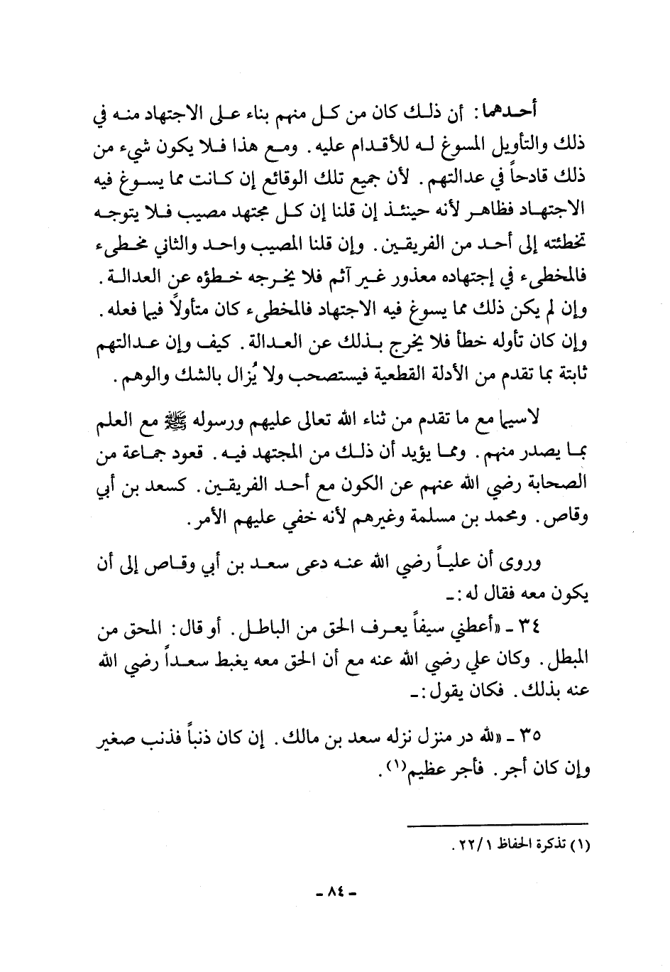 ومما يؤيد أن ذلك من المجتهد فيه قعود جماعة من الصحابة رضي الله عنهم عن الكون مع أحد الفريقين، كسعد بن أبي وقاص، ومحمد بن مسلمة وغيرهم لأنه خفي عليهم الأمر.