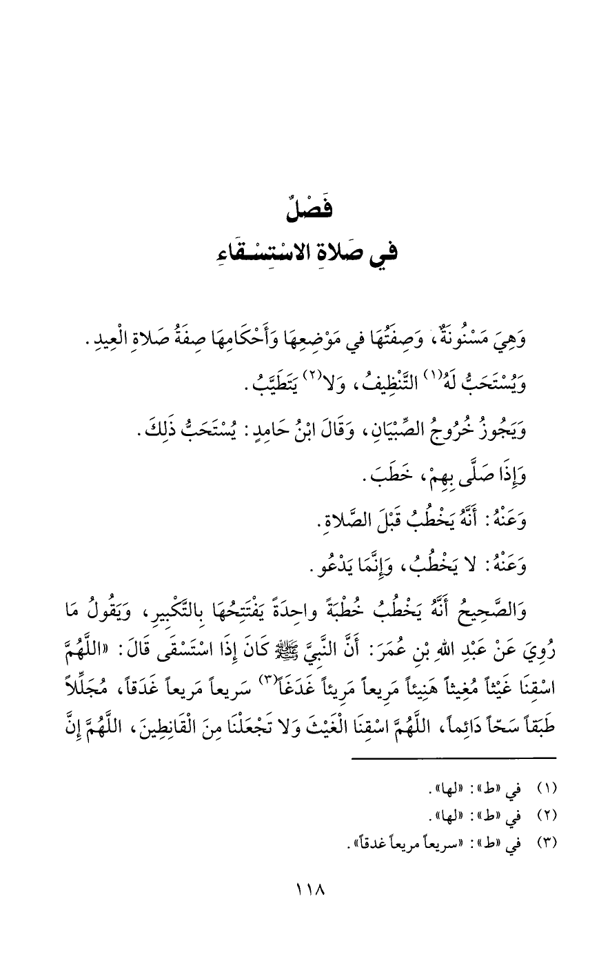 وَالصَّحِيحُ أَنَّهُ يَخْطُبُ خُطْبَةً واحِدَةً يَفْتَتِحُهَا بِالتكْبِيرِ، وَيَقُولُ مَا رُوِيَ عَنْ عَبْدِ اللهِ بْنِ عُمَرَ: أَنَّ النَّبِيَّ - صلى الله عليه وسلم - كَانَ إِذَا اسْتَسْقَى قَالَ: "اللَّهُمَّ اسْقِنَا غَيْثاً مُغِيثاً هَنِيئاً مَرِيعاً مَرِيئاً غَدَغَاً (¬3) سَريعاً مَريعاً غَدَقاً، مُجَلِّلاً طَبَقاً سَحّاً دَائِماَ، اللَّهُمَّ اسْقِنَا الْغَيْثَ وَلا تَجْعَلْنَا مِنَ الْقَانِطِينَ، اللَّهُمَّ إِنَّ