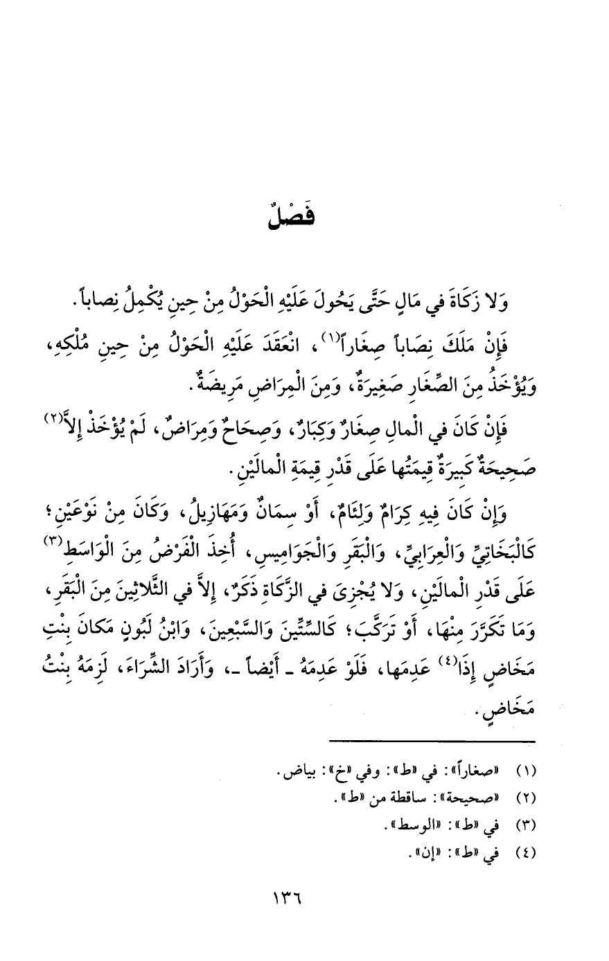 وَإِنْ كَانَ فِيهِ كِرَامٌ وَلِئَامٌ، أَوْ سِمَانٌ وَمَهَازِيلُ، وَكَانَ مِنْ نَوْعَيْنِ؛ كَالْبَخَاتِيِّ وَالْعِرَابِيِّ، وَالْبقَرِ وَالْجَوَامِيسِ، أُخِذَ الْفَرْضُ مِنَ الْوَاسَطِ (¬3) عَلَى قَدْرِ الْمالَيْنِ، وَلا يُجْزِىَ فِي الزَّكَاةِ ذَكَرٌ، إِلَّا فِي الثَّلاثِينَ مِنَ الْبَقَرِ، وَمَا تَكَرَّرَ مِنْهَا، أَوْ تَرَكَّبَ؛ كَالسِّتِّينَ وَالسَّبْعِينَ، وَابْنُ لَبُونٍ مَكانَ بِنْتِ مَخَاضٍ إِذَا (¬4) عَدِمَها، فَلَوْ عَدِمَهُ -أَيْضاً-، وَأَرَادَ الشِّرَاءَ، لَزِمَهُ بِنْتُ مَخَاضٍ.