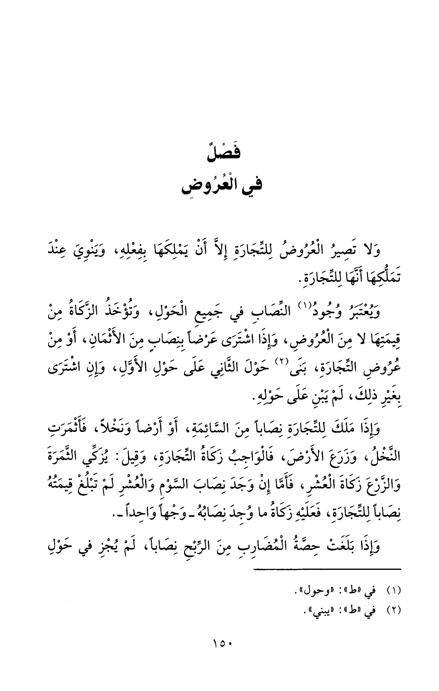 فَصْلٌ فِي الْعُرُوضِ