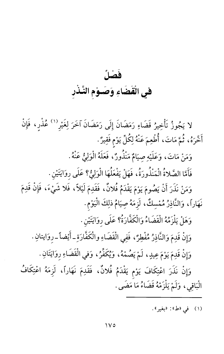 فَصْلٌ فِي الْقضَاءِ وَصَوْمِ النَّذْرِ