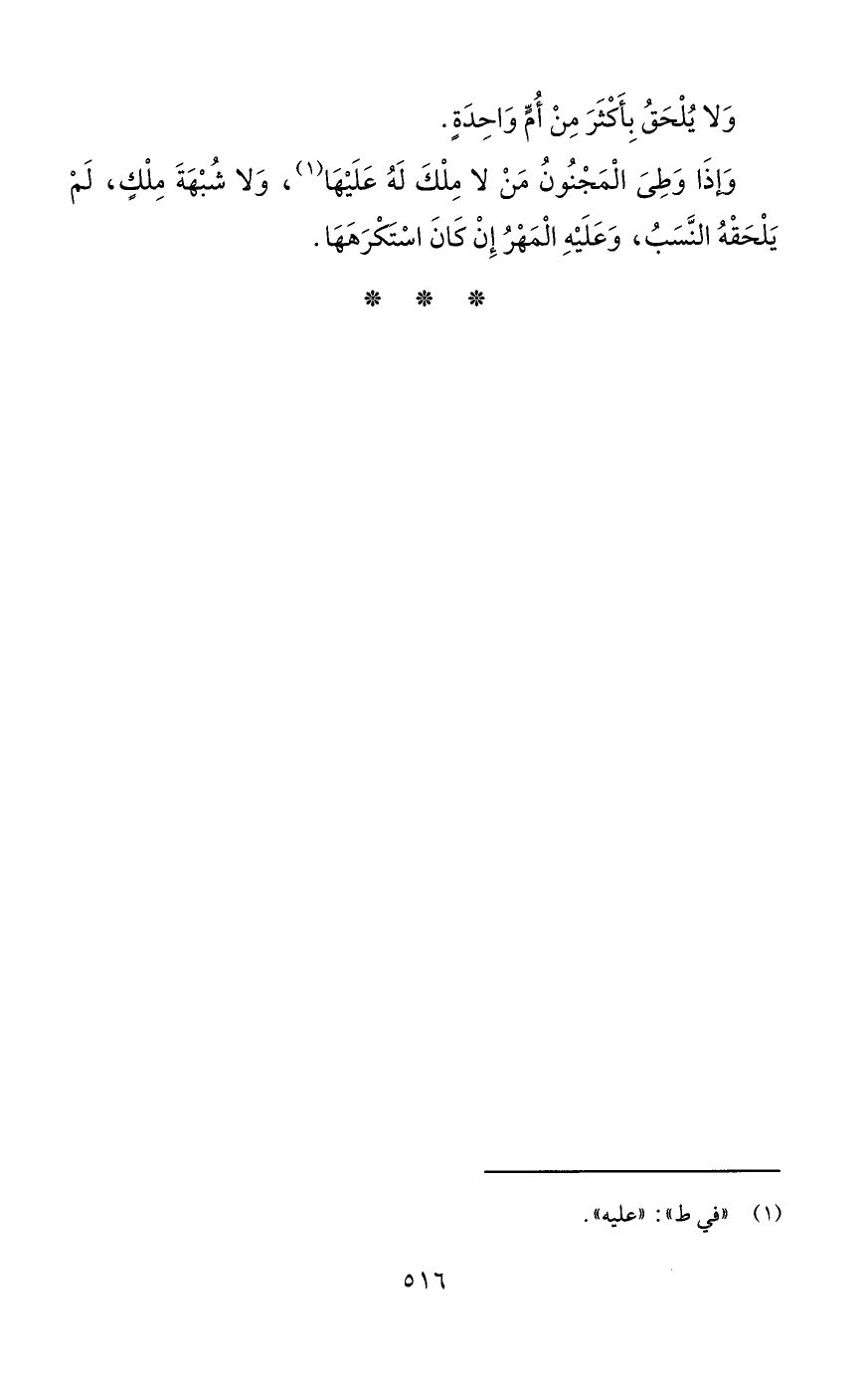 وَلا يُلْحَقُ بِأَكْثَرَ مِنْ أُمٍّ وَاحِدَةٍ.