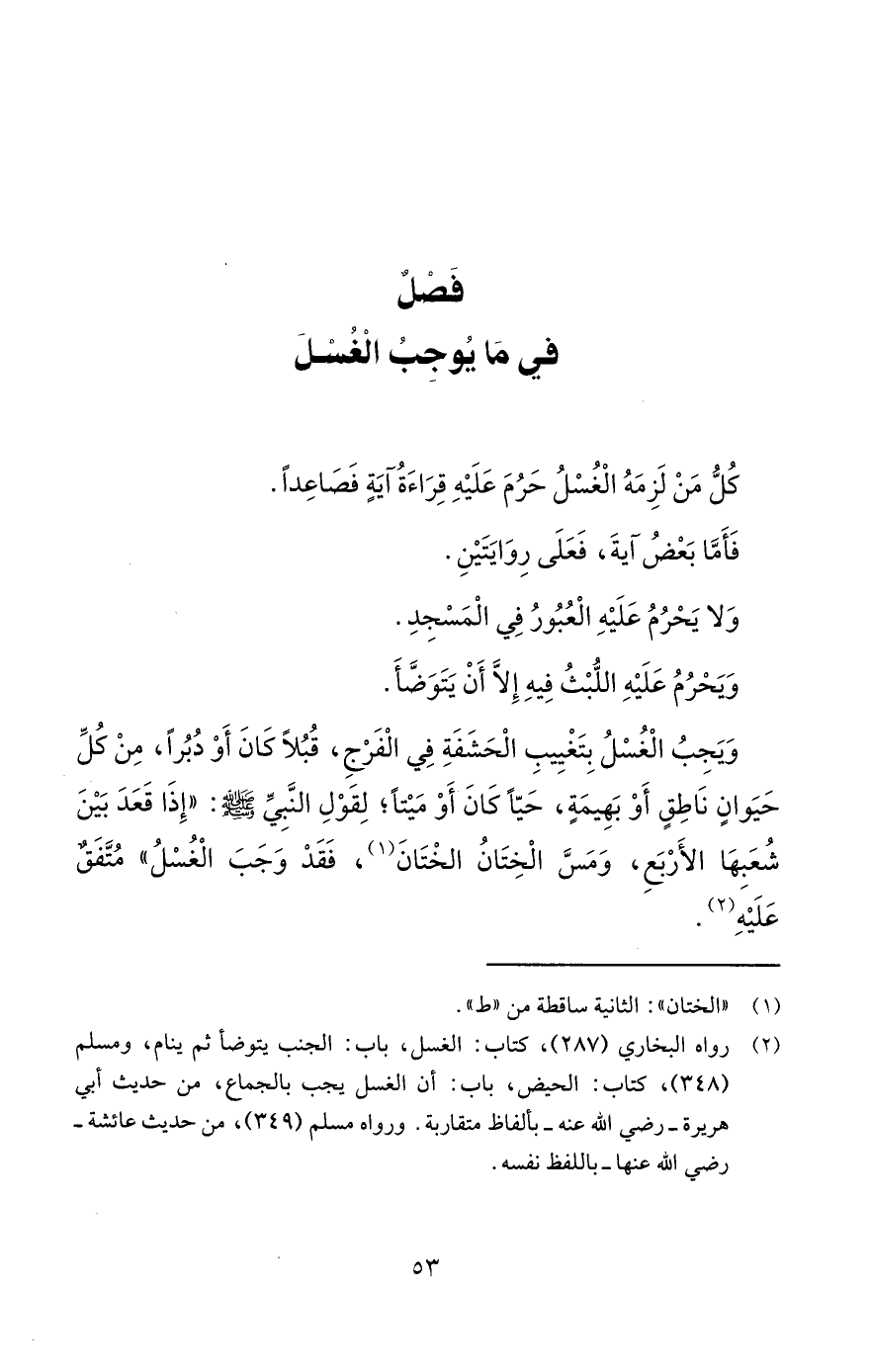 (¬2) رواه البخاري (287)، كتاب: الغسل، باب: الجنب يتوضأ ثم ينام، ومسلم (348)، كتاب: الحيض، باب: أن الغسل يجب بالجماع، من حديث أبي هريرة -رضي الله عنه- بألفاظ متقاربة. ورواه مسلم (349)، من حديث عائشة -رضي الله عنها- باللفظ نفسه.