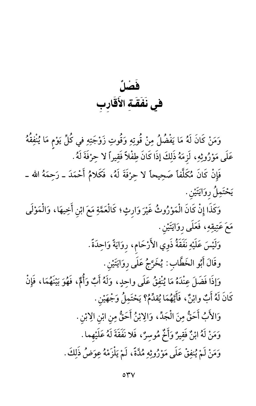 فَصْلٌ في نَفَقَةِ الأَقَارِبِ