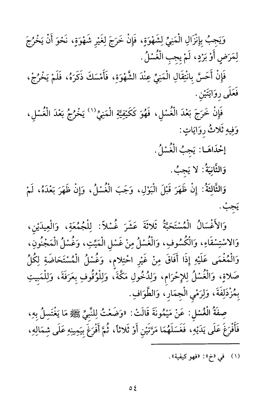 صِفَةُ الْغُسْلِ: عَنْ مَيْمُونَةَ قَالَتْ: "وَضَعْتُ لِلنَّبِيِّ - صلى الله عليه وسلم - مَا يَغْتَسِلُ بِهِ، فَأَفْرَغَ عَلَى يَدَيْهِ، فَغَسَلَهُمَا مَرَّتَيْنِ أَوْ ثَلاثاً، ثُمَّ أَفْرَغَ بِيَمِينِهِ عَلَى شِمَالِهِ،
