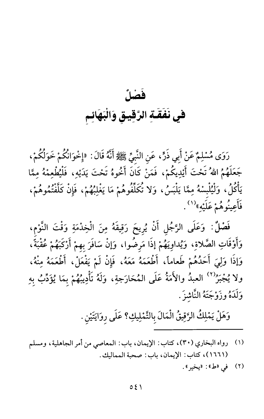 فَصْلٌ في نَفَقَةِ الرَّقيقِ وَالْبَهَائِمِ