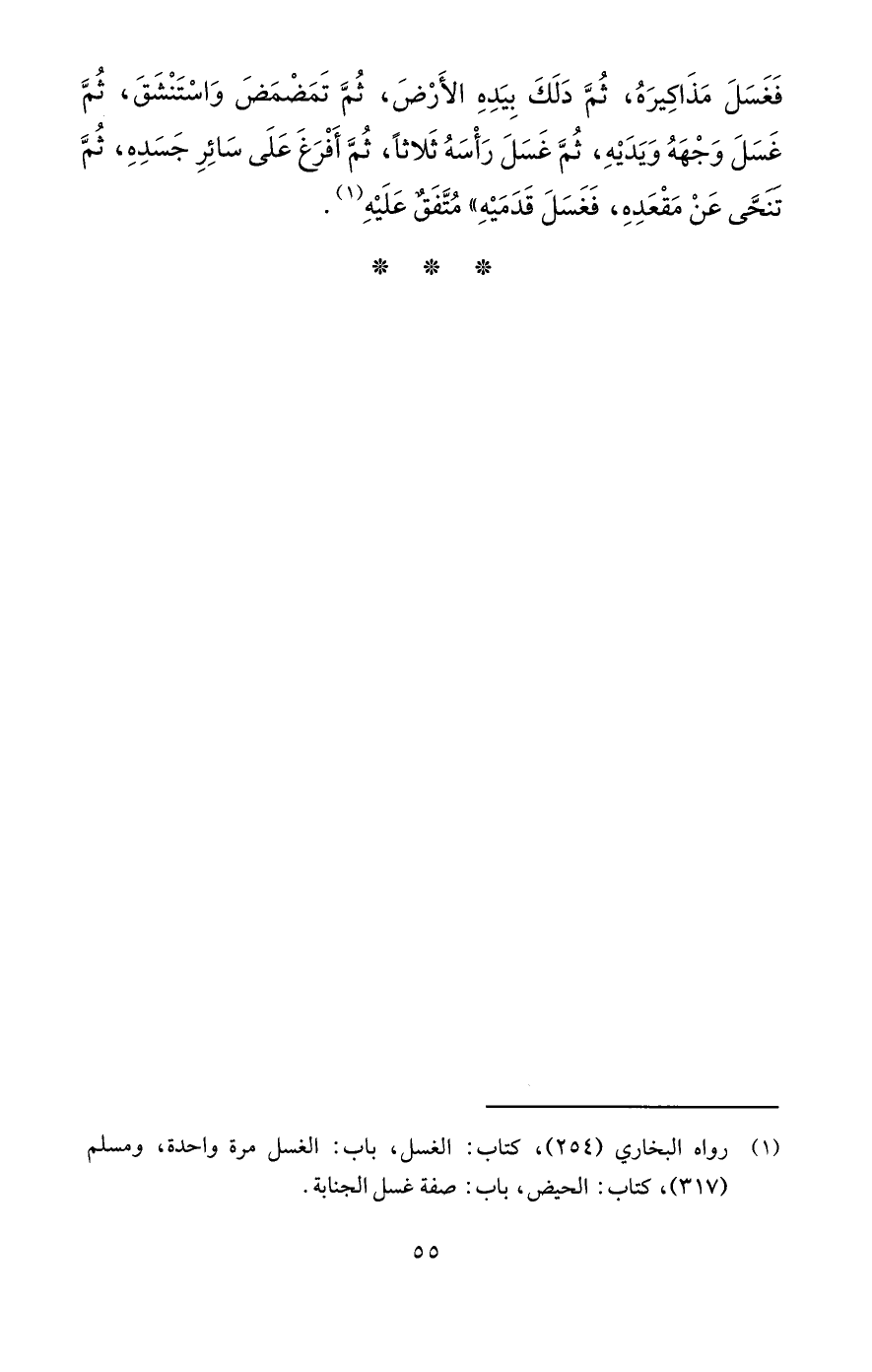 (¬1) رواه البخاري (254)، كتاب: الغسل، باب: الغسل مرة واحدة، ومسلم (317)، كتاب: الحيض، باب: صفة غسل الجنابة.
