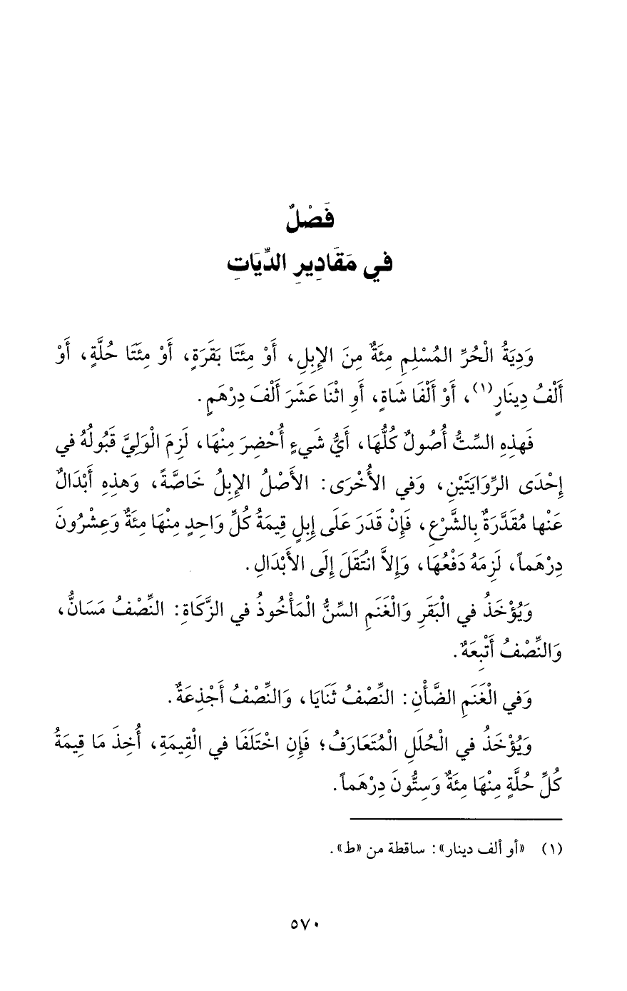 فَصْلٌ في مَقَادِيرِ الدِّيَاتِ
