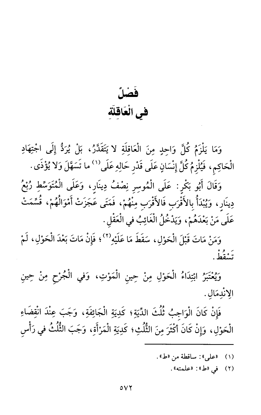 فَصْلٌ في الْعَاقِلَةِ