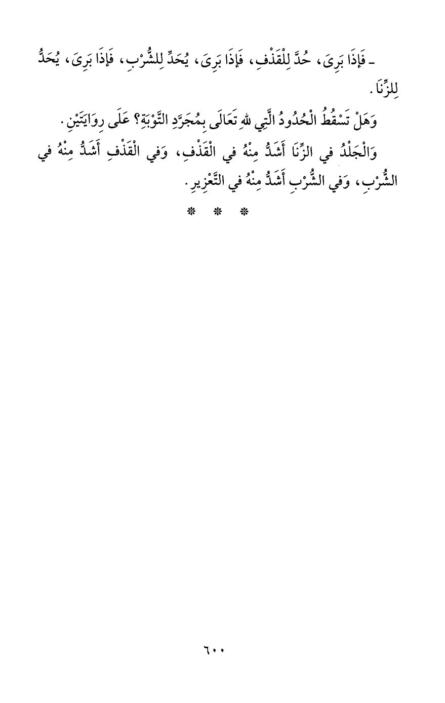 - فَإذَا بَرِىَ، حُدَّ لِلْقَذْفِ، فَإذَا بَرِىَ، يُحَدِّ لِلشُّرْبِ، فَإذَا بَرِىَ، يُحَدُّ لِلزِّنَا.