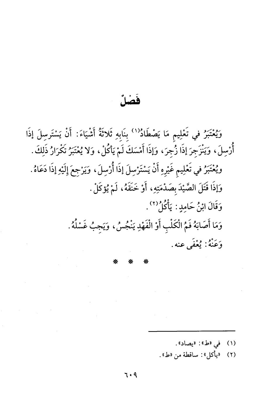 وَيُعْتَبَرُ في تَعْلِيمِ مَا يَصْطَادُ (¬1) بِنَابِهِ ثَلاثَةُ أَشْيَاءَ: أَنْ يَسْتَرسِلَ إذَا أُرْسِلَ، وَيَنْزَجِرَ إذَا زُجِرَ، وَإذَا أَمْسَكَ لَمْ يَأكُلْ، وَلا يُعْتَبَرُ تَكْرَارُ ذَلِكَ.